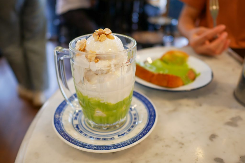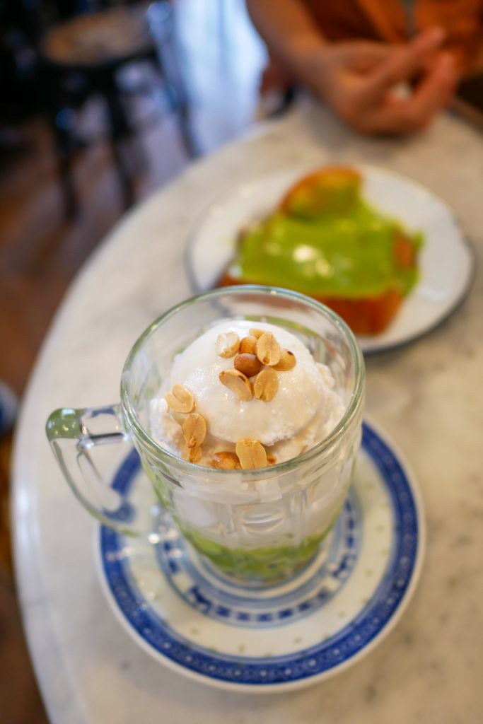 ก่อนจะปิดท้ายด้วย “ไอศกรีมกะทิสังขยา” ที่ด้านล่างของถ้วยมีขนมปังให้คลุกกินคู่กับไอศรีม ถ้วยนี้ปริมาณเยอะอยู่ เลยแบ่งกินกับเพื่อนที่ไปด้วยกัน และเดินกลับออกมาภายในเวลาประมาณ 30 นาที ด้วยอารมณ์ดี และสดใสเหมือนสีสังขยาใบเตยที่อยู่ในท้อง
