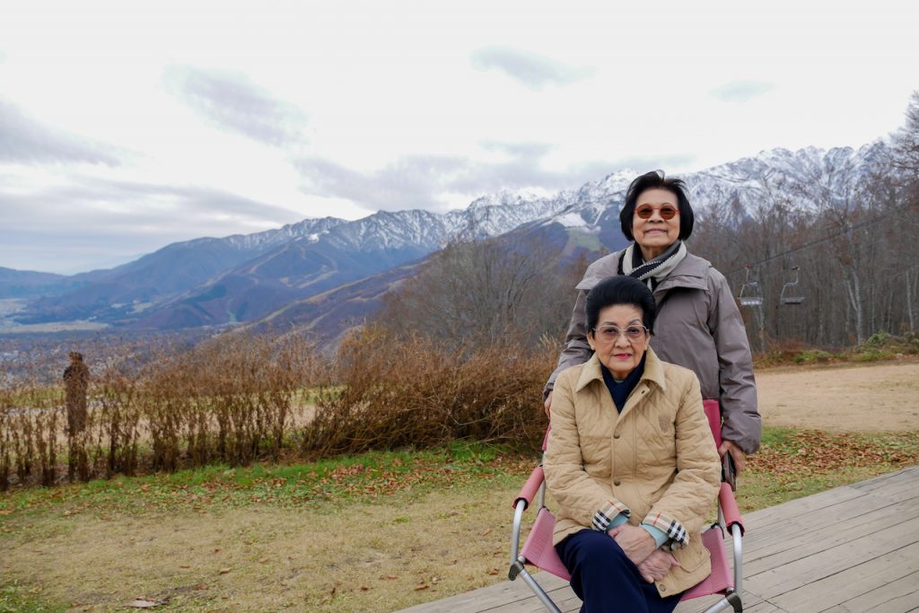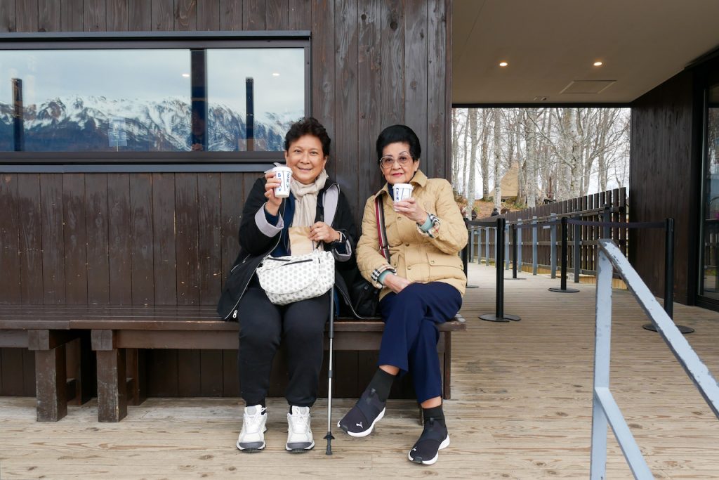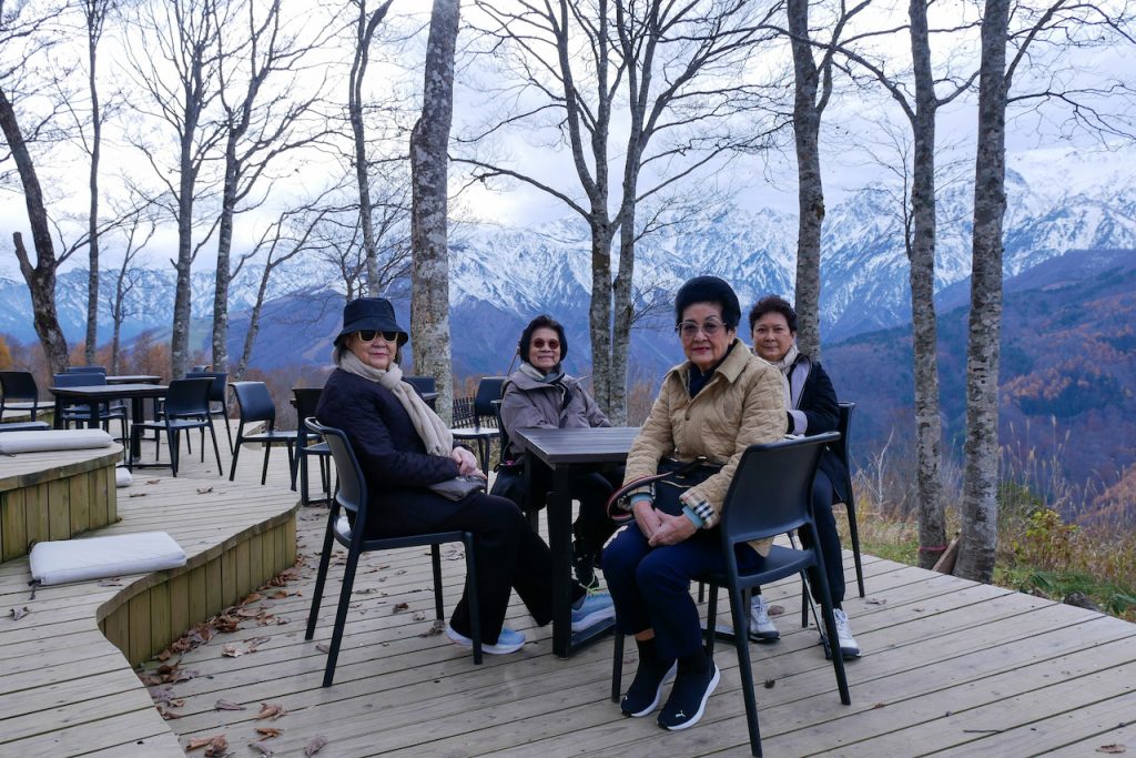สูงวัยนั่งจิบกาแฟชมบรรยากาศ รอบๆ Hakuba อย่างมีความสุข