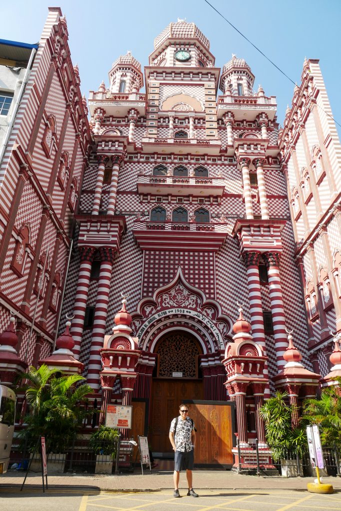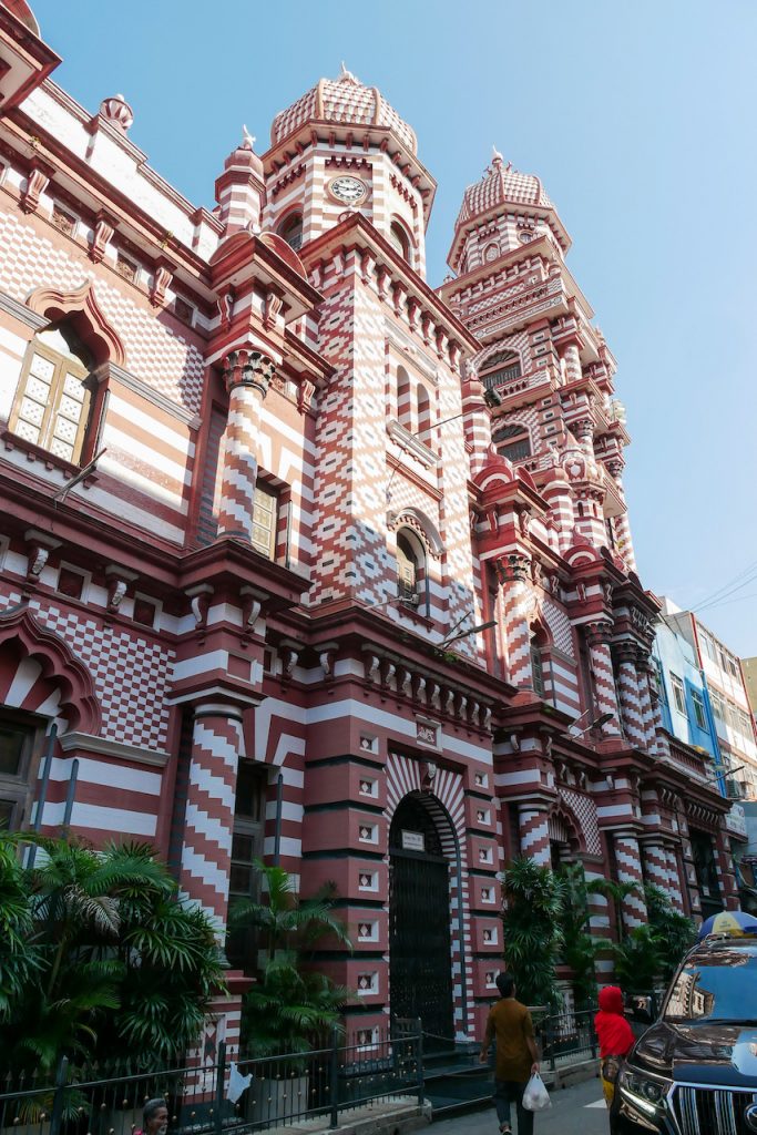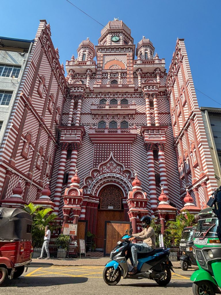 Jami Ul-Alfar Masjid สร้างเสร็จเมื่อปี 1909 ด้วยเงินสนับสนุนจากชาวอินเดียมุสลิมที่อาศัยในศรีลังกา ลักษณะเด่นของมัสยิดอยู่ที่การเล่นสีแดง-ขาวเป็นลายทาง ประกอบกับสถาปัตยกรรมของมุสลิม โดมหัวหอม ทำให้สูงเด่นเป็นสง่า และกลายเป็นแหล่งท่องเที่ยวลำดับต้นๆของโคลอมโบ โดยมี Red Mosque เป็นชื่อเล่นที่นักท่องเที่ยวมอบให้กับมัสยิดสีลูกกวาดนี้