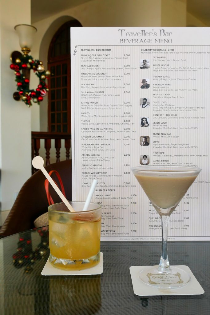 เรามาถึงโรงแรมประมาณสามโมงเย็น แวะจิบค๊อกเทลที่ Traveler’s Bar รอให้ Afternoon Tea ที่จองไว้ตอนสี่โมงเย็นเปิด Traveler’s Bar ก็เป็นอีกไฮไลต์ของ Galle Face Hotel เพราะคนดัง บุคคลมีชื่อเสียงเคยมาจิบเครื่องดื่มที่บาร์แห่งนี้ เมนูค๊อกเทลของที่นี่เลยตั้งตามหนัง หรือเรื่องราวของบุคคลดังเหล่านั้น บ่ายนี้เราขอตามรอย Harrison Ford เลือกค๊อกเทล Indiana Jones ที่นำคาลัวร์และว๊อดก้ามาผสมกัน ส่วนลุงผู้เป็นแฟนคลับของ Star Wars เลือกแก้ว New Hope ของ Carrier Fisher เจ้าหญิงเลอา ที่เป็นวิสกี้เข้มข้นมาจิบ พลางรับลมทะเลที่เฉลียงของบาร์ วันนี้ฟ้าใส น้ำทะเลสีสวยมาก เรานั่งจิบเครื่องดื่มอย่างเงียบๆ และเดินชมภายในของบาร์ที่มีรูปเหล่าเซเลบริตี้ติดไว้บนทำเนียบผนัง เป็นอีกหนึ่งความประทับในโคลอมโบที่แนะนำให้มาสัมผัสกันค่ะ