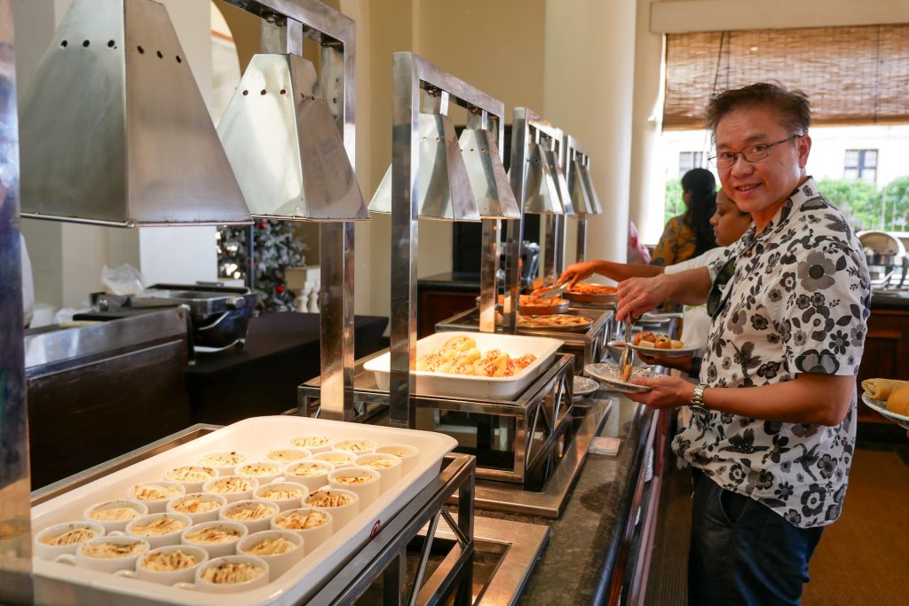 อาหารเช้าของโรงแรมก็น่าประทับใจมาก Buffet Line ของทุกสัญชาติวางเรียงตามสเตชั่นต่างๆ มุมเบเกอร์รี่และขนมหวานจัดแยกออกจากของคาว ชาวศรีลังกาน่าจะชอบของหวานเหมือนคนอินเดียหรือเปล่า มุมนี้เลยอลังการ ทั้งขนมท้องถิ่น ครัวซองค์ เบเกอร์รี่ และช้อกโกแล็ตลาวา มีให้เลือกจนตาลายไปหมด