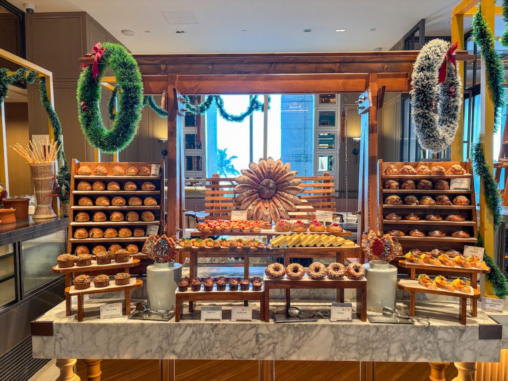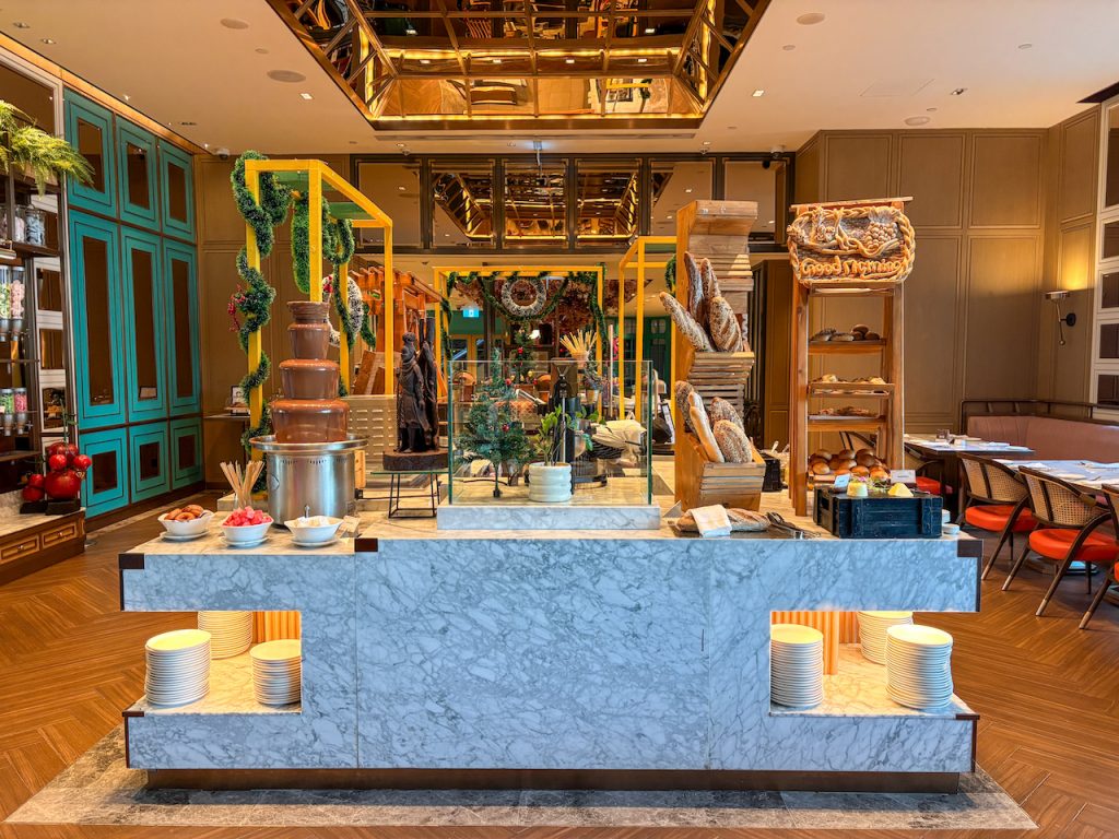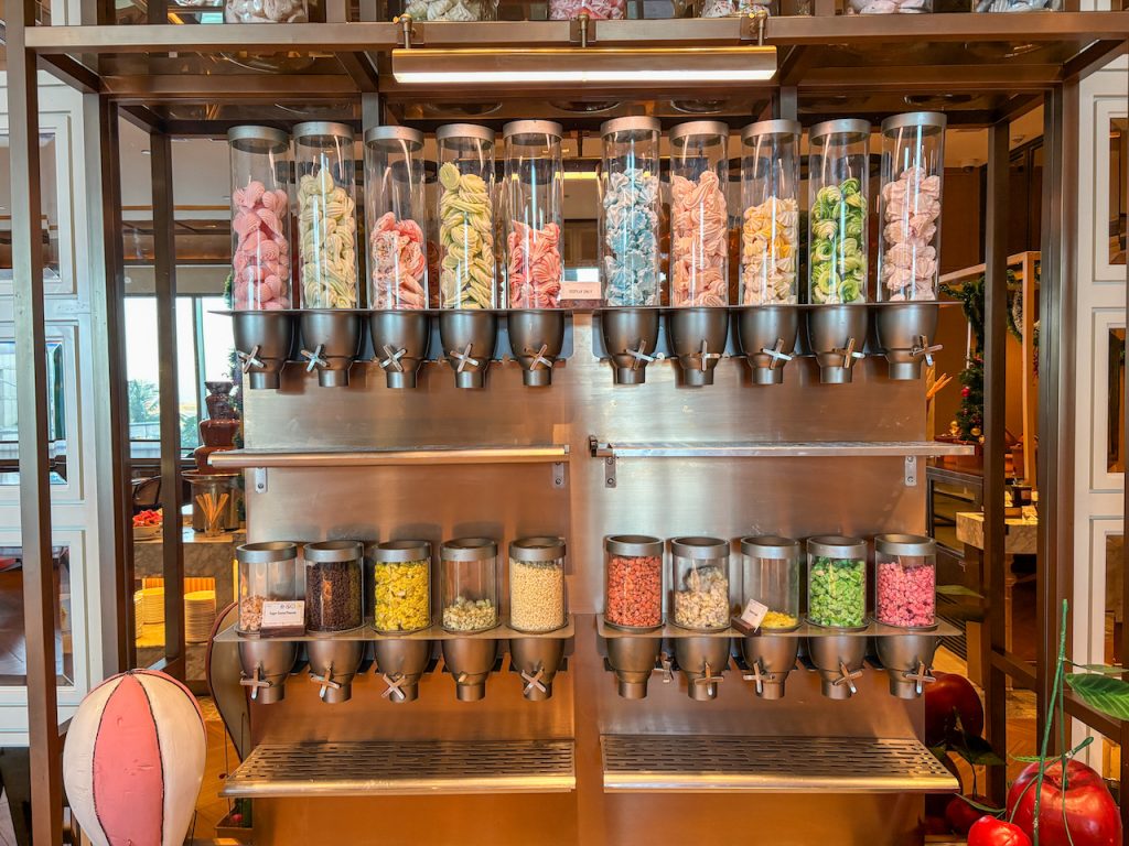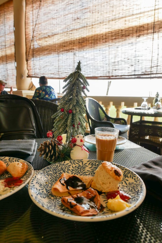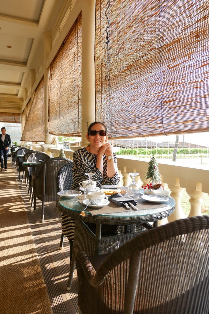 เมื่อเวลาสี่โมงเย็นมาถึง เราก็ย้ายไปที่ห้องอาหาร The Verandah ซึ่งเป็นสถานที่จัด Afternoon Tea และในบ่ายวันอาทิตย์ชุดน้ำชายามบ่ายจะพิเศษหน่อย เสิร์ฟแบบบุฟเฟ่ที่อาหารคาวและหวานจะตั้งบนโต๊ะยาวให้ลูกค้าเดินเลือกตามใจชอบ