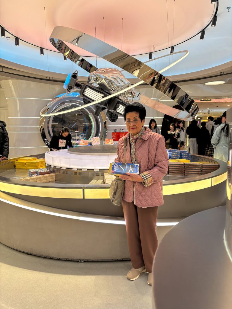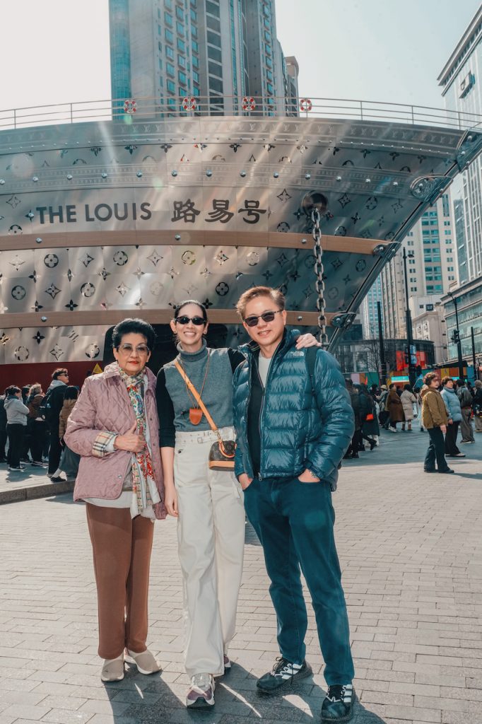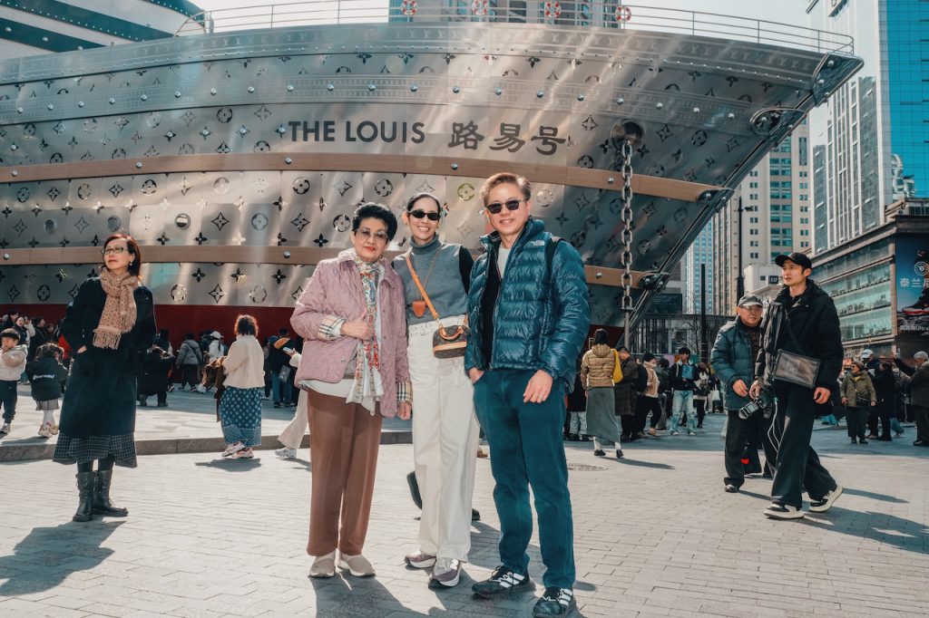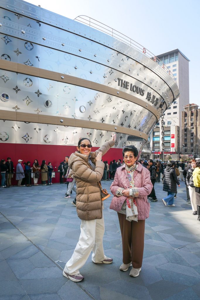 เรือสำราญลำนี้มาจอดที่เซี่ยงไฮ้ตั้งแต่ปี 2025 และก็กลายเป็นสัญลักษณ์ความหรูหราของเมือง ภายในเรือมีนิทรรศการ Visionary Journeysและ Le Café Louis Vuitton ซึ่งต้องจองล่วงหน้า เราเลยเดินถ่ายรูปสนุกๆรอบเรือกับคุณยาย และภาพสุดท้ายให้ช่างภาพจีนถ่ายให้ เก็บภาพของเราทั้ง 3 คน ในราคาภาพละ 40 หยวน