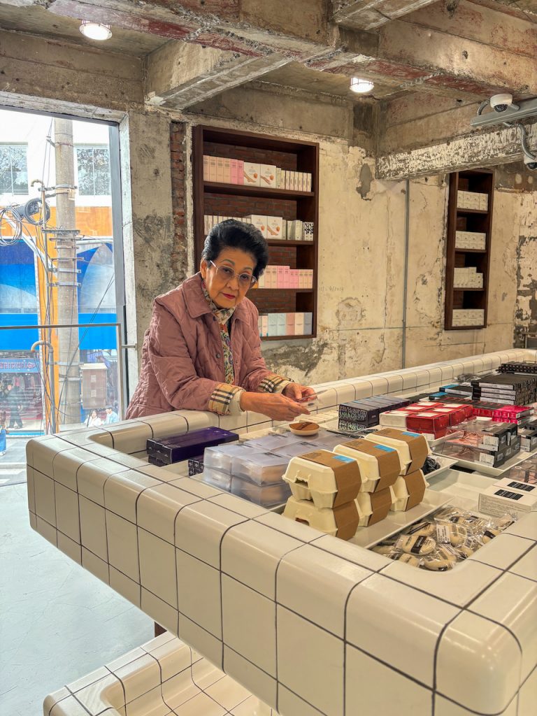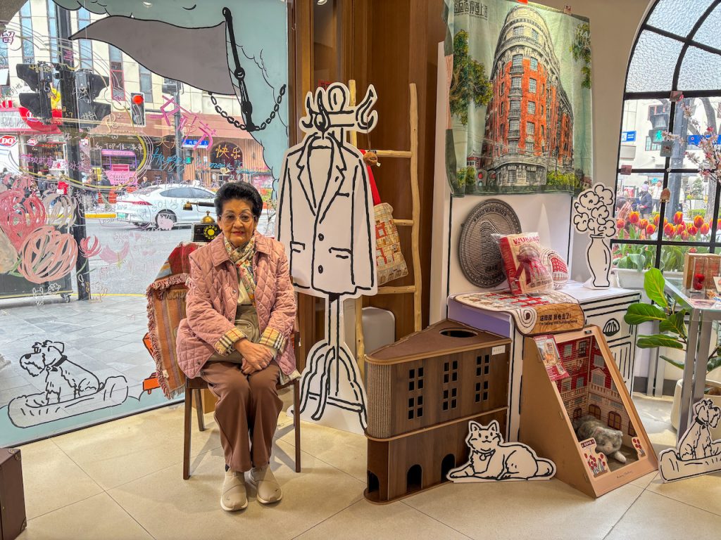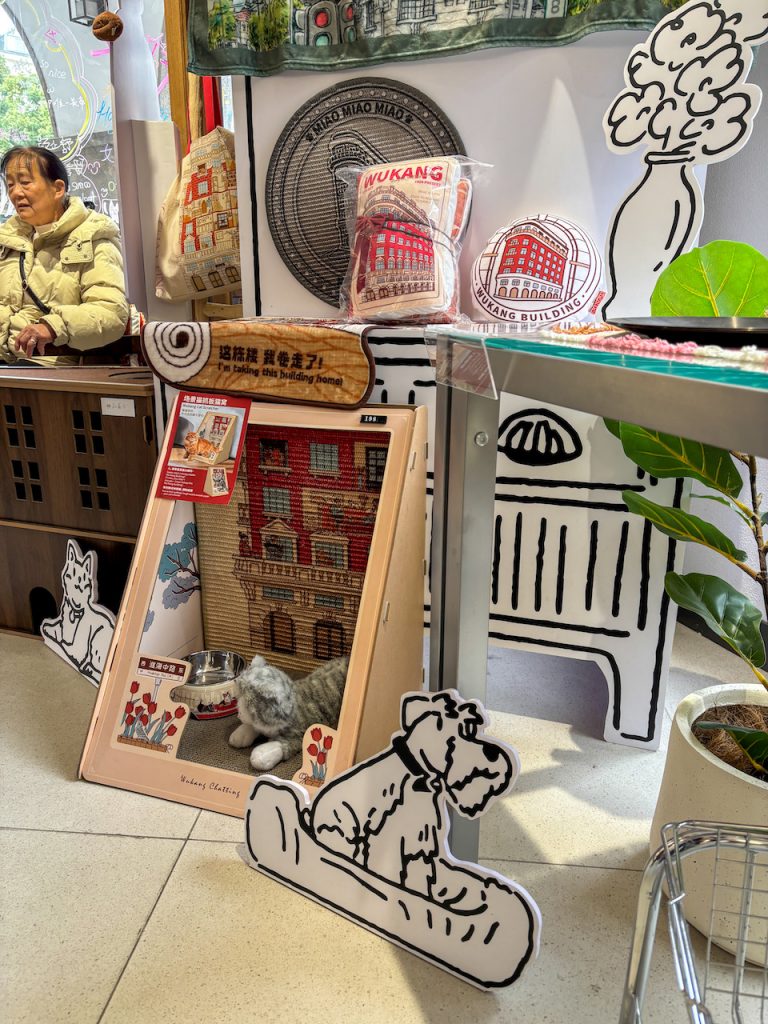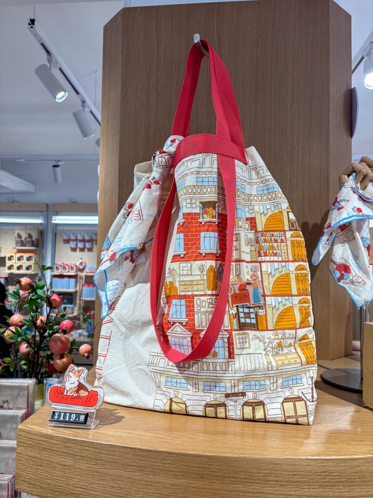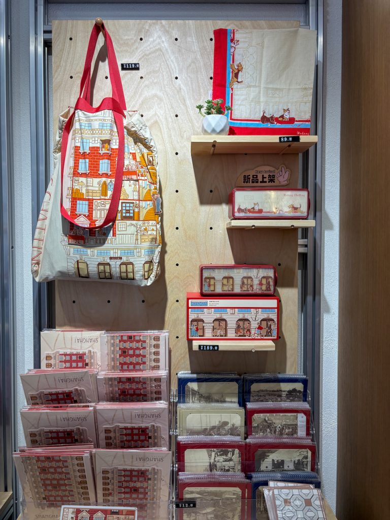 หลังจากถ่ายรูปเสร็จ คุณยายแวะไปดูร้านขายของที่ระลึกของ Wukang Mansion ที่ตั้งอยู่ใต้ตึก ดีไซน์และกราฟฟิกน่ารักมากๆ ลายเส้นคิวท์สไตล์ญี่ปุ่นผสมเกาหลี มุมถ่ายรูปก็มี เราได้กระเป๋าช้อปปิ้งลายเส้น Wukang Mansion ในราคา 119 หยวนติดมือกลับมาด้วย