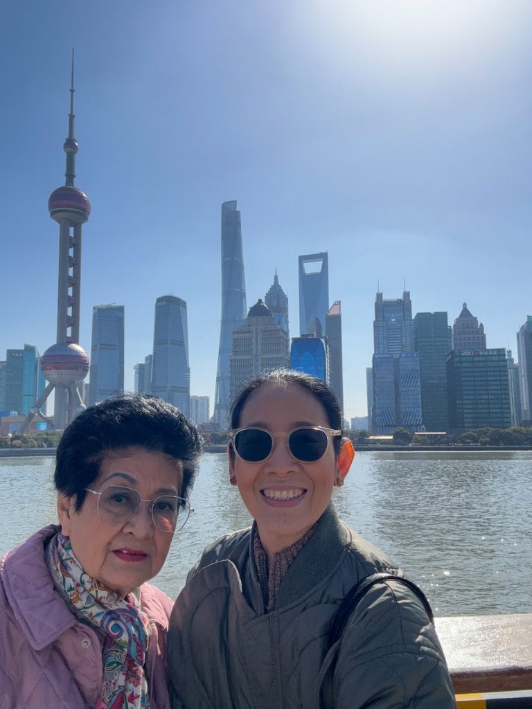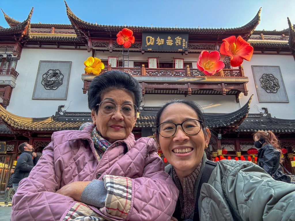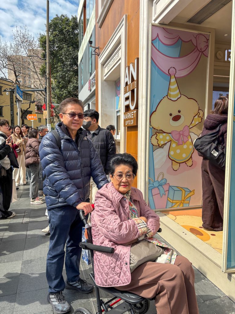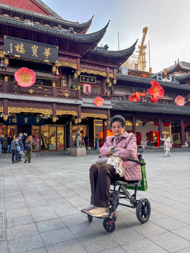 ทริปนี้เราเอารถเข็นแบบพับได้ไปเอง เริ่มซิ่งตั้งแต่สนามบิน ซึ่งได้รับความสะดวกสบายเข้าช่องพิเศษทั้งที่สุวรรณภูมิและผู่ตงเซี่ยงไฮ้ ขั้นตอนการฝากรถเข็นก่อนขึ้นเครื่องก็คล้ายกับรถเข็นเด็ก เจ้าหน้าที่จะนำรถเข็นไปโหลดเก็บไว้ข้างเครื่อง และเมื่อลงจอด เราก็มารับรถเข็นด้านหน้าเครื่อง สะดวกสบาย และรวดเร็วทันใจ ใครสนใจพาสูงวัยไปเที่ยวเซี่ยงไฮ้ ตามรอยของเราสองคนกันได้เลยค่ะ