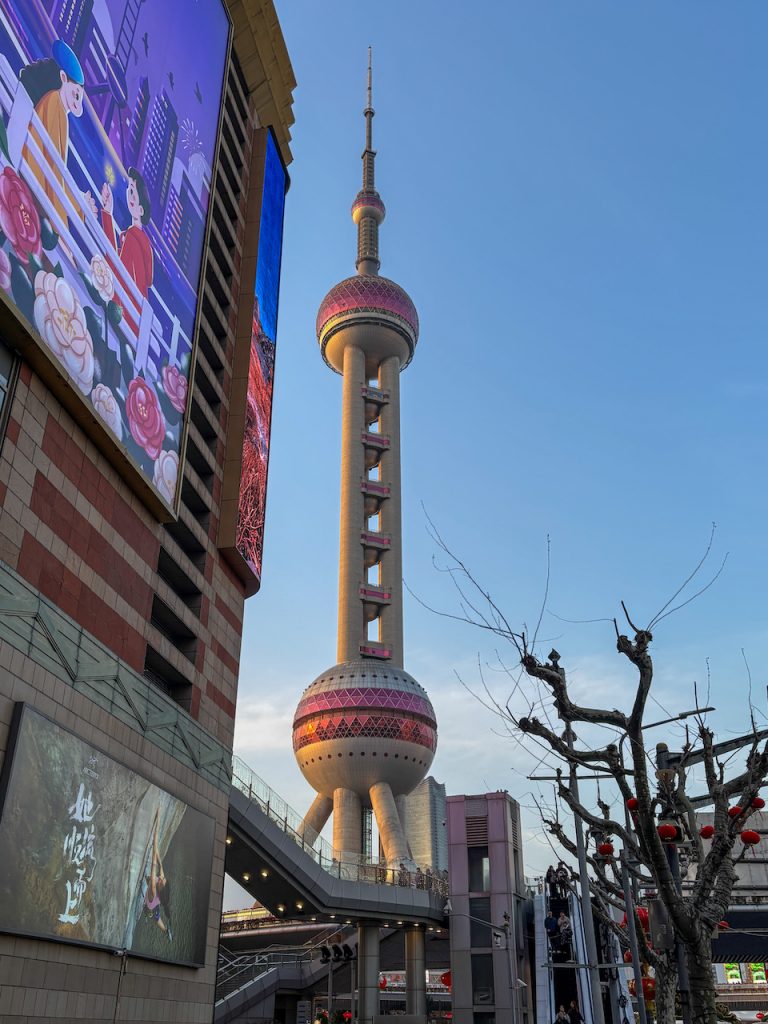 จุดเช็คอินแรกหลังจากเก็บกระเป๋าที่โรงแรม Intercontinental Pudong ก็คือทางเดินลอยฟ้า ที่เป็นสะพานวงกลม เชื่อมย่านการเงิน และแหล่งช้อปปิ้งของย่านPudong (ผู่ตง) ไว้ด้วยกัน จุดนี้เราจะได้เห็นสัญลักษณ์ของเซี่ยงไฮ้ “หอไข่มุกตะวันออก (Oriental Pearl Tower)” อย่างใกล้ชิด ย้อนกลับไปเมื่อ 11 ปีก่อน เราเคยมาถ่ายรูปเซลฟี่กัน 3 คน กับคุณตา คุณยาย และเราตรงทางเดินนี้ แต่วันนี้คุณตากลับสวรรค์แล้ว เราสองแม่ลูกเลยแวะมาระลึกความหลังในมุมเดิม พร้อมกับกวักมือชวนคุณตามาเที่ยวเซี่ยงไฮ้ด้วยกันอีกครั้งค่ะ
