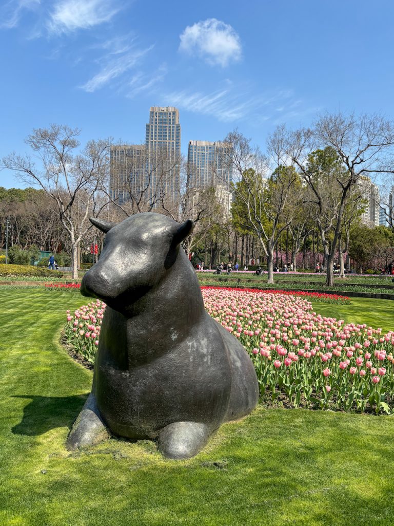 สวนประติมากรรมจิงอัน ไม่ได้อยู่ในแผนเที่ยวของเรา แต่พอเพจเที่ยวเซี่ยงไฮ้ประกาศว่า ดอกซากุระบานแล้ว เลยชวนคุณยายหญิงไปเดินเล่นชมซากุระ เข็นรถพาชมทั่วสวนที่มีขนาดกะทัดรัด ไปยังสวนดอกทิวลิป ที่บานในช่วงนี้เหมือนกัน พร้อมถ่ายรูปกับงานประติมากรรมที่จัดวางไว้รอบๆสวน วันนี้อากาศดีมาก ฟ้าใส ครอบครัวชาวจีนพาลูกเล็กเด็กแดงออกมารับไออุ่น ถือเป็นชีวิตที่ดีในเมืองใหญ่ของจีนค่ะ