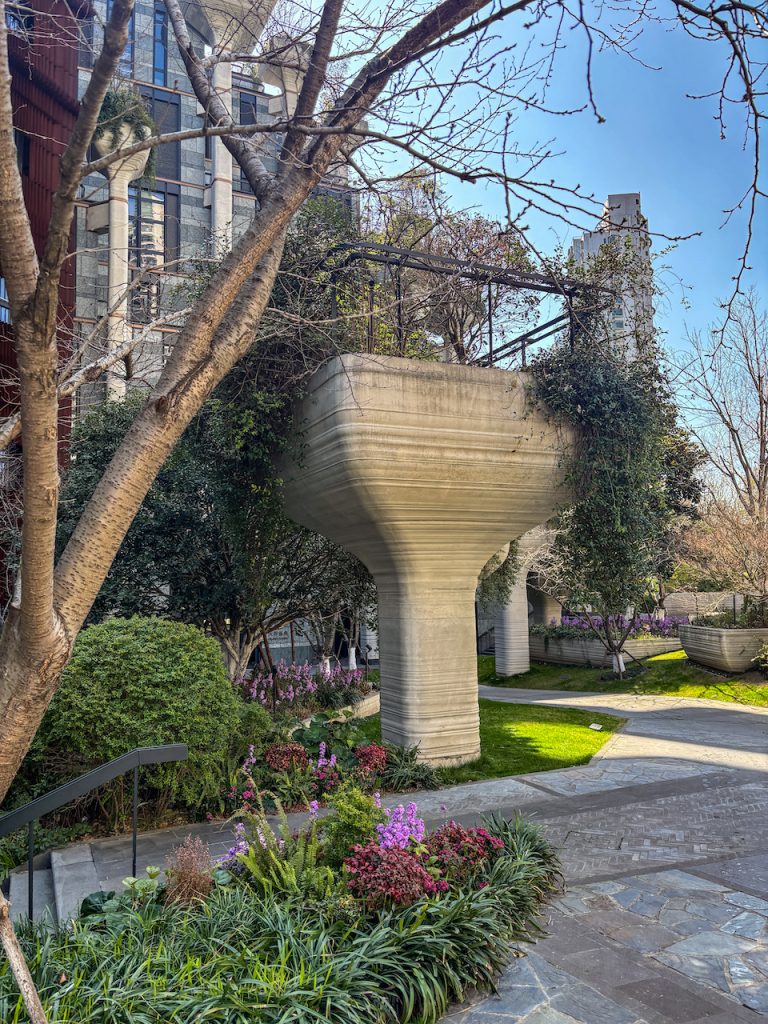 หนึ่งในแลนด์มาร์คของเซี่ยงไฮ้ต้องมีชื่อของอาคารต้นไม้พันต้น หรือ Tian An 1000 Trees อาคารนี้เป็นศูนย์การค้าขนาดใหญ่ ออกแบบคล้ายป่าไม้อยู่บนอาคาร โดยสถาปนิกชาวอังกฤษ Thomas Heatherwick ที่จำลองภูเขาหวงซานมาสร้างเป็นตึกต้นไม้พันต้น จุดถ่ายรูปที่นักท่องเที่ยวไปเก็บภาพอยู่บนสะพานข้างๆศูนย์การค้าและฝั่งตรงข้าม แต่ระยะทางจากศูนย์ไปจุดถ่ายรูปค่อนข้างไกล คุณยายเดินไม่สะดวก เราเลยถ่ายรูปแค่ด้านหน้า ภาพอาจจะไม่สวยปัง แต่ก็ได้เห็นความยิ่งใหญ่ และความตั้งใจของสถาปนิกแล้วหล่ะ