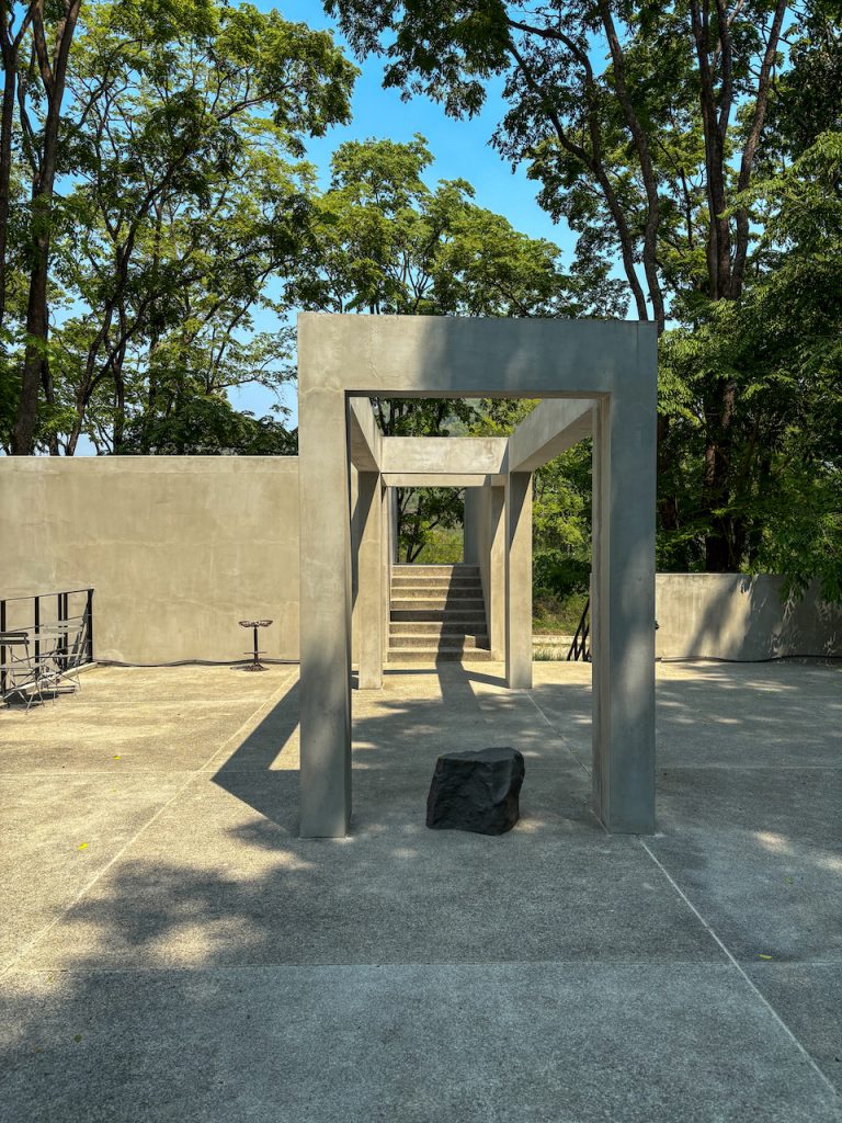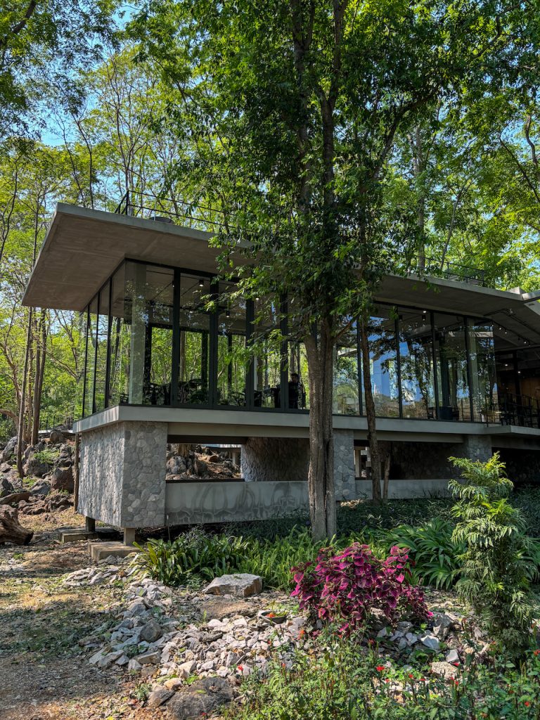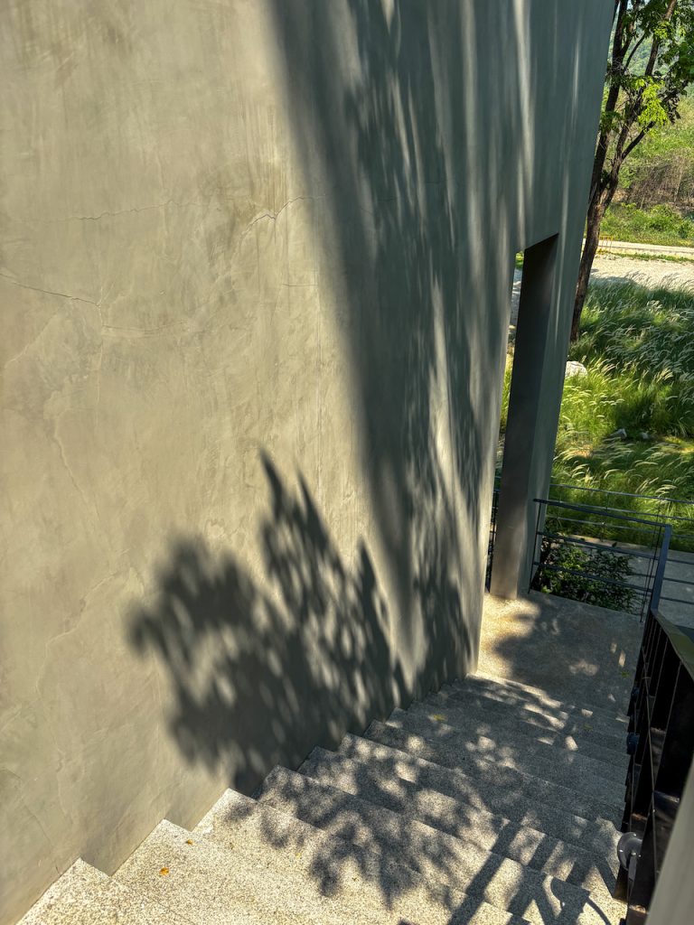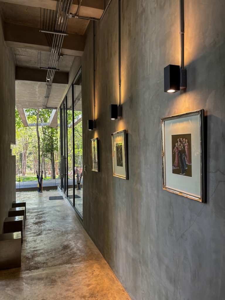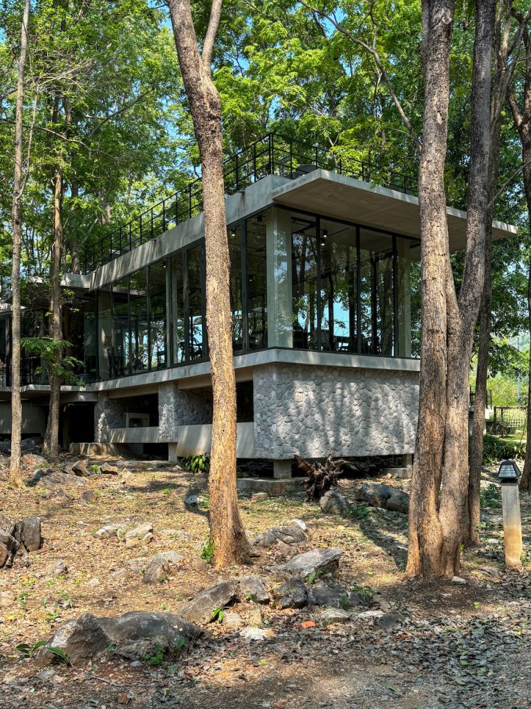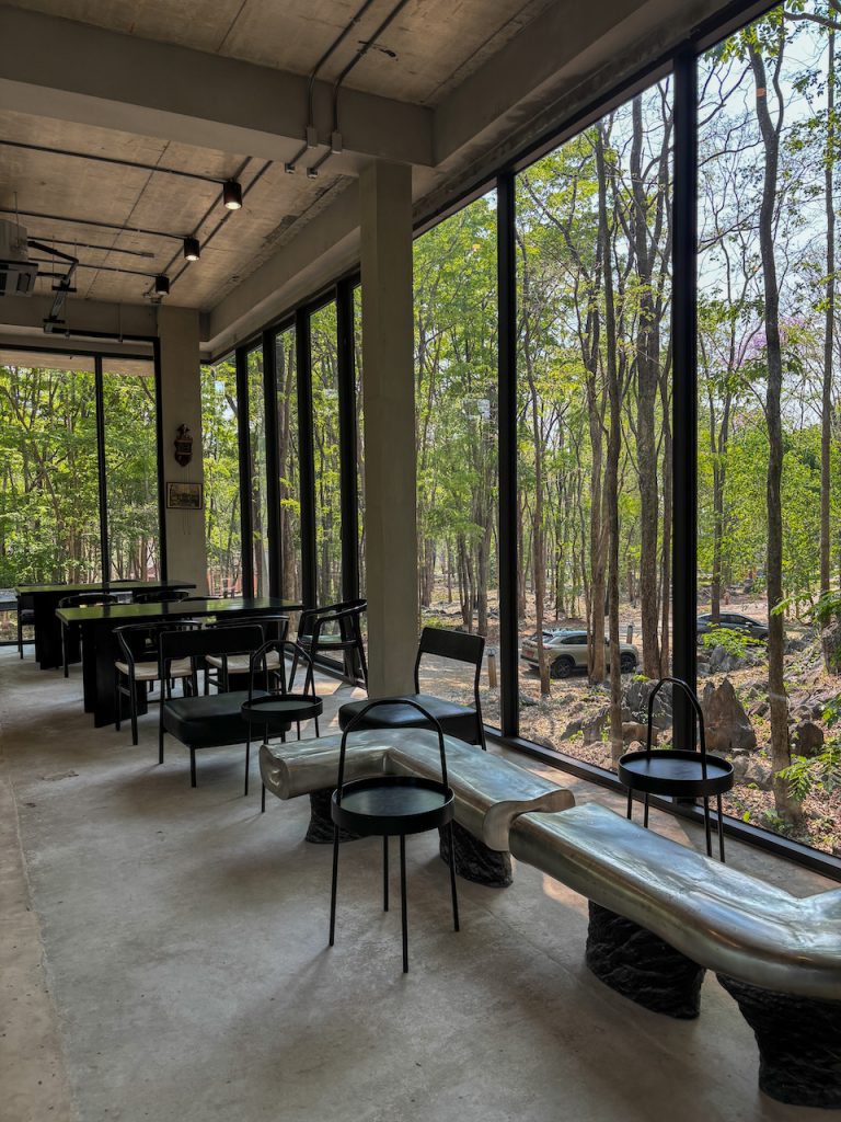 หากมองไปด้านข้าง เราจะเห็นทางเดินทอดยาว อารมณ์เหมือนเดินปล่อยใจอยู่กลางป่า แต่ถ้าก้าวขาขึ้นไปบนชั้นดาดฟ้า ก็จะพบกับอีกมุมมองใหม่ ที่มีลานกว้าง เก้าอี้เอนหลังให้นั่งมองต้นไม้และท้องฟ้า พร้อมกับเสียงใบไม้ที่พลิ้วไหวตามสายลม