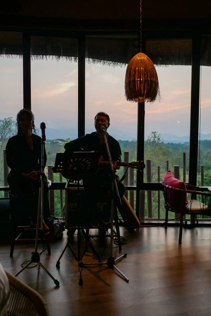 ค่ำคืนนี้ มีดนตรีสดบรรเลงให้ฟังด้วย โต๊ะเรามุมดี แต่ก็ใกล้กับนักร้อง ทำให้เวลาพูดคุยต้องเร่งเสียงดังขึ้น ถ้าใครอยากมากินแบบเงียบสงบ ให้มาช่วงวันธรรมดา คนน่าจะน้อย และจะได้เอนจอยกับวิวเขาใหญ่ พร้อมดื่มด่ำกับการตกแต่งภายในของร้านที่สวยงามเลยค่ะ