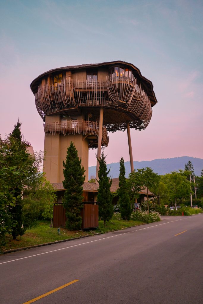 คอนเซ็ปต์ของ Kuni Kuni คือต้นไม้แห่งชีวิต การออกแบบจึงคล้ายกับต้นไม้จริง ความสูงของลำต้น 25 เมตรจากพื้น หรือประมาณตึก 3 ชั้น ข้างบนเป็นห้องอาหารที่รูปทรงคล้ายกับพุ่มไม้ พื้นที่กินข้าวมีทั้ง indoor และ outdoor มองเห็นวิวพาโนรามาของแนวเขาใหญ่ ฤดูหนาวนั่งรับลมเย็นๆพร้อมจิบไวน์สักแก้วน่าเป็นไอเดียที่ดี